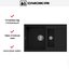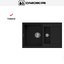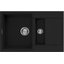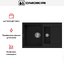 Материал — TetoGranit. Изделие изготовлено методом литья, толщина материала — 10 мм. Такая технология обеспечивает цельную структуру без слоистых участков, а однородный черный цвет подчеркивает прямые линии кромок и чаш. Масса мойки составляет 10.85 кг — цифра, отражающая устойчивость и солидность. Для крепления к столешнице предусмотрены монтажные клипсы, они идут в комплекте поставки.