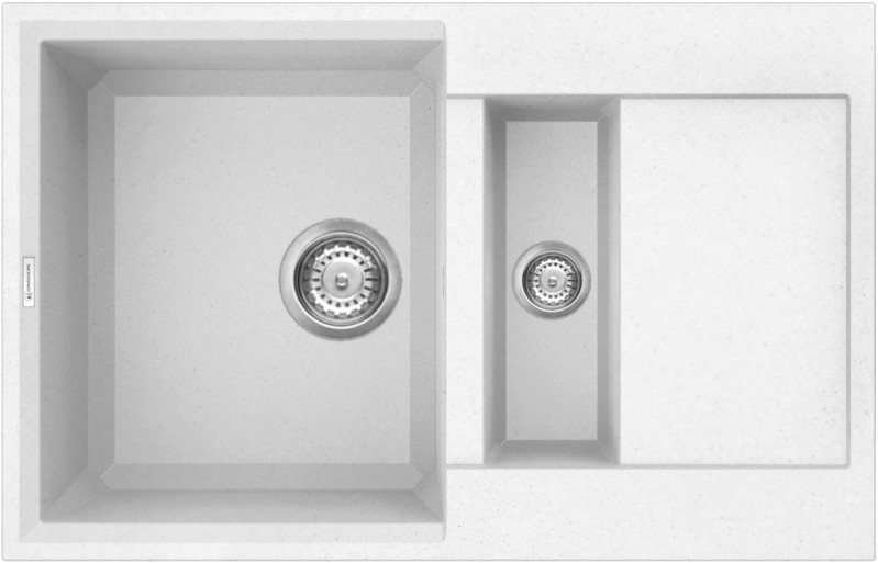 Модель сочетает в себе функциональность и продуманный дизайн: прямоугольный контур, четкие грани и поверхность белого цвета гармонично сочетаются с большинством кухонных фасадов. Конфигурация включает одну большую чашу, дополнительную узкую емкость и боковую площадку-крыло. Благодаря оборачиваемой конструкции крыло и малая чаша могут располагаться слева или справа — ориентация выбирается по вашему усмотрению.