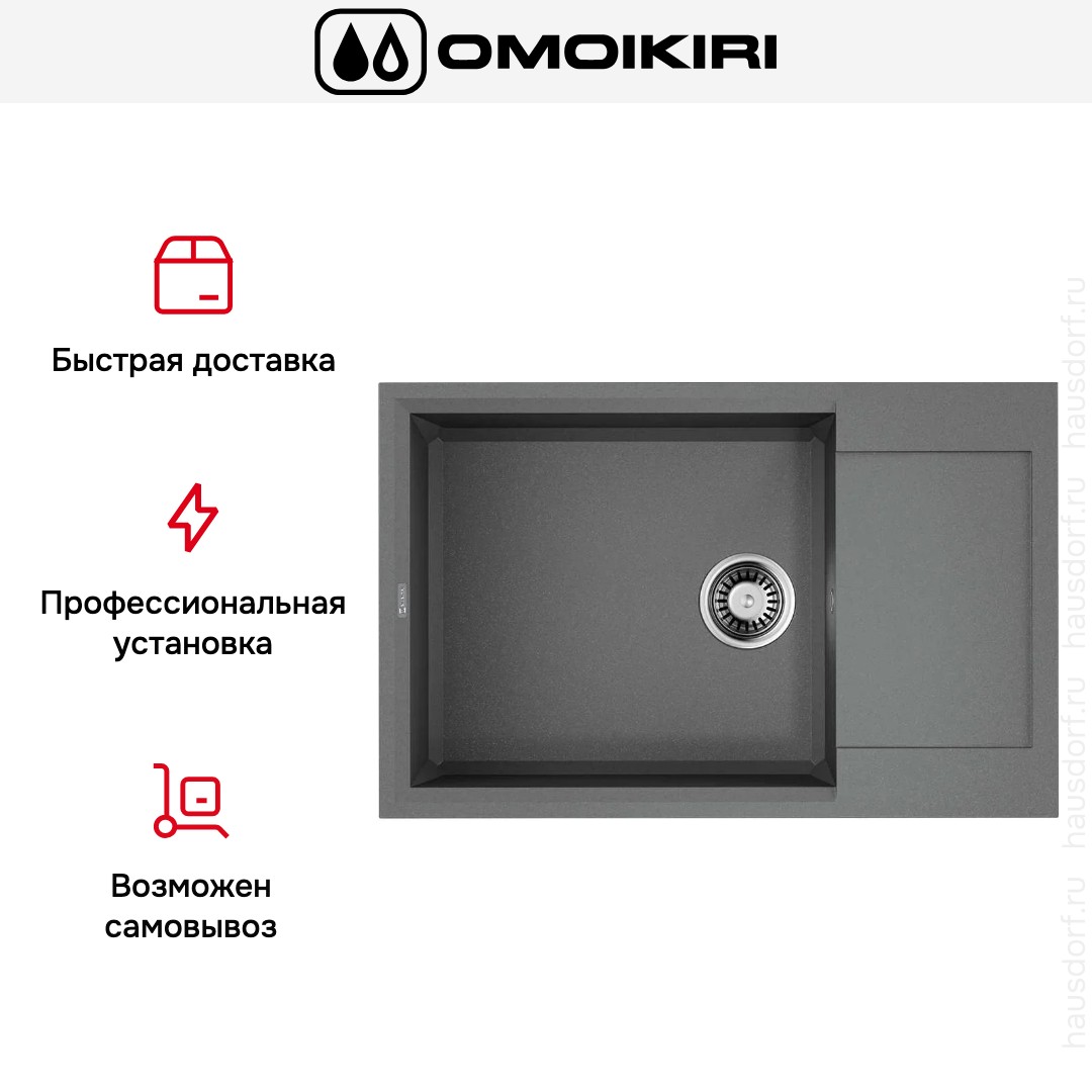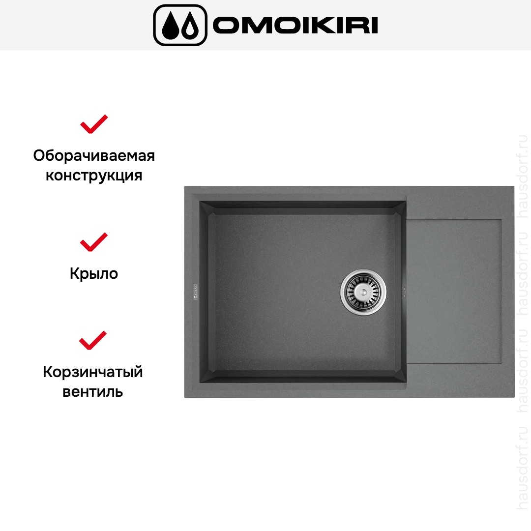 Обратите внимание на дизайнерские отличия мойки Омойкири, которые помогут в создании идеальной кухни в вашем доме. Она выполнена в цвете Серый Ленинград. Крыло, расположенное является дополнительным рабочим пространством, на котором можно сушить посуду, разделывать мясо и нарезать овощи.