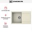 Прямоугольная накладная мойка большого размера шириной 79 см и глубиной 50 см выглядит внушительно, она уместна в кухнях разного стиля. Бледно-желтый ванильный оттенок не бросается в глаза и в то же время отличается от привычного белого. Компоновка включает одну основную чашу и крыло, равные по ширине; линии строгие, пропорции выверены, изделие легко сочетается с прямыми фасадами.