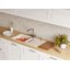 Основная чаша размером 3736,5 см и глубиной 21 см без труда вмещает большие кастрюли и противни. Дополнительная небольшая чаша 1126,5 см глубиной 12 см идеально подходит для ополаскивания овощей, размораживания полуфабрикатов или как место для столовых приборов. Наличие внушительного по площади крыла даёт дополнительную рабочую поверхность для сушки или временного размещения посуды. Перелив защищает от распространения воды и делает работу с раковиной безопасной при длительном замачивании.