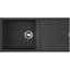 Крыло служит для сушки посуды и предварительной раскладки, его наклон помогает стеканию воды прямо в чашу. Черная поверхность легко сочетается с разными оттенками столешниц и фасадов, создавая эффект строгой минималистичной кухни. Композитный материал TetoGranit и метод литья обеспечивают однородную структуру и глубокий цвет без видимых швов.