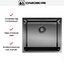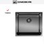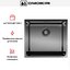 Материал — нержавеющая сталь с PVD-покрытием в эффектном цвете «вороненая сталь». Такое покрытие усиливает устойчивость к царапинам, а технология шумоподавление снижает громкость звука при наборе воды. Вес около 4.1 кг делает изделие легким для транспортировки и установки, но при этом прочным в эксплуатации.