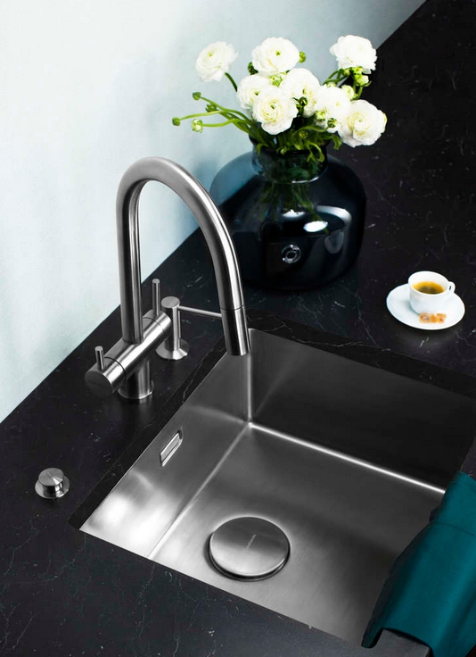 под столешницу — мойка расположена чуть ниже рабочей поверхности для лучшей герметизации;