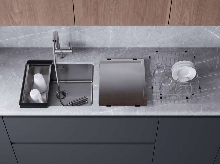 Мойка с одной чашей — классический вариант, который привычен пользователям. Вариации этой конструкции — мойка с одной основной и одной дополнительной чашей, с аксессуарами (например, коландером), с крылом. Стандартная глубина таких моделей — 15-20 см, чтобы внутри поместилась посуда или продукты, а брызги не попадали вне.