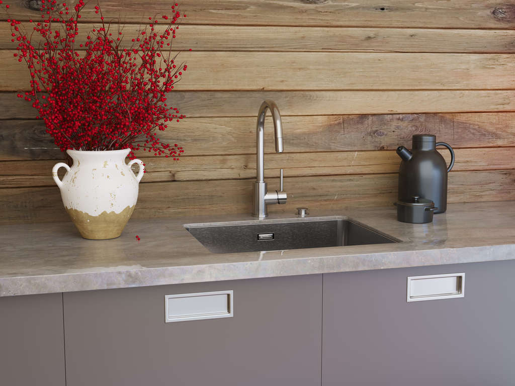 вровень со столешницей — создается ощущение бесшовного пространства, а если мойка сделана из того же материала, то и единого дизайна;