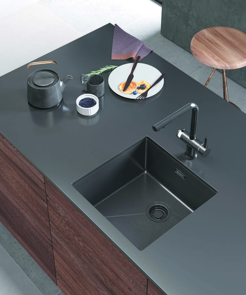 вровень со столешницей — создается ощущение бесшовного пространства, а если мойка сделана из того же материала, то и единого дизайна;