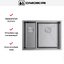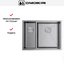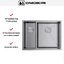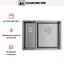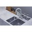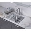 Дизайн ориентирован на удобство: радиус скругления 1 см придаёт современный геометричный вид и упрощает очистку углов. Конструкция не переворачиваемая, поэтому при планировании установки важно заранее определиться с направлением чаш и расположением смесителя. Возможны три способа монтажа — над столешницей, под неё и вровень — что даёт свободу выбора оформления и позволяет интегрировать изделие в разные рабочие поверхности, включая ламинат.
