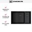 Установка возможна над столешницей, под столешницу или вровень с ней, а также допускается монтаж под ламинат при соблюдении технологии. Для врезки потребуется отверстие 67,9×42,4 см, а минимальная ширина базы — 80 см. Комплект включает корзинчатый вентиль, сифон и крепления, что упрощает монтаж и ввод в эксплуатацию. Нейтральный графитовый тон и лаконичная форма делают изделие подходящим для разных стилей, от лофта до скандинавской кухни.