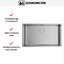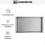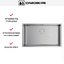 Способ монтажа универсален: установка возможна над столешницей, под столешницу или вровень со столешницей, поэтому мойку можно адаптировать под различные кухонные планы. Ширина базы 80 см и размеры монтажного отверстия 70×40 см упрощают подготовку гарнитура и гарантируют точную стыковку. Небольшая глубина монтажного проёма минимизирует вмешательство в конструкцию столешницы.