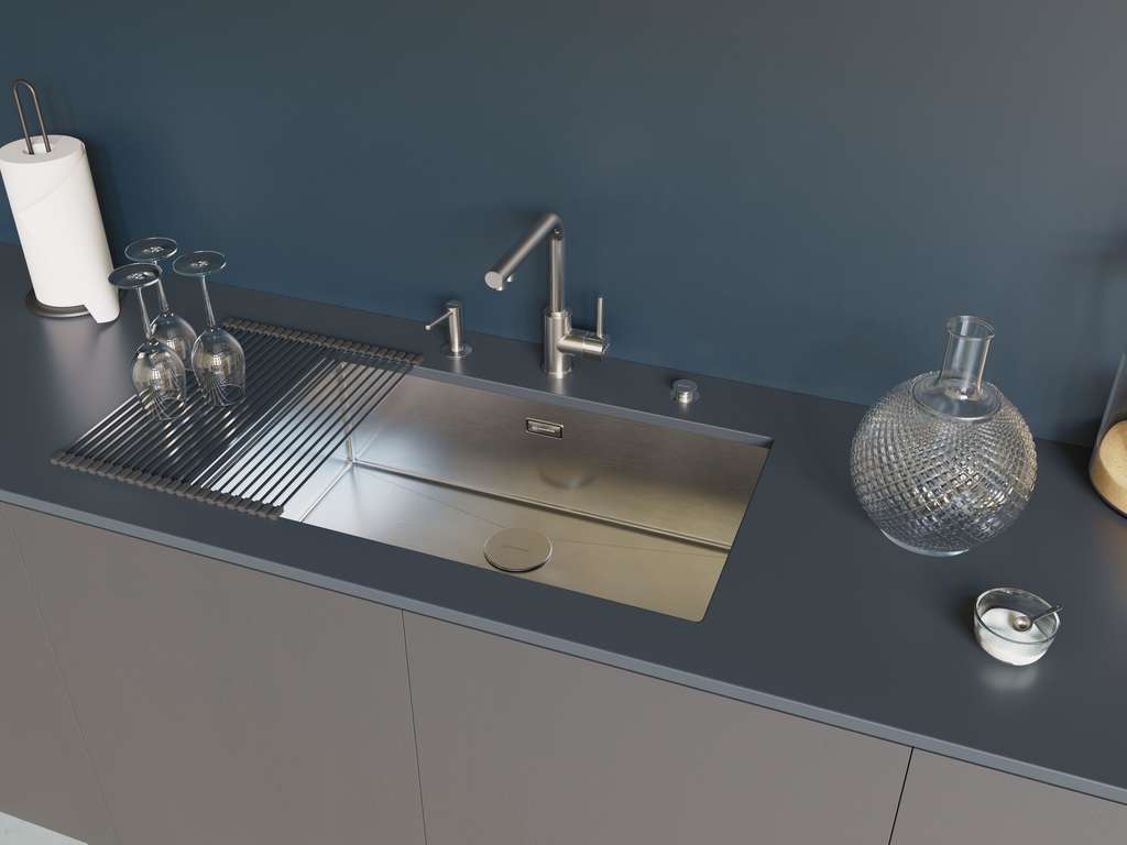 вровень со столешницей — создается ощущение бесшовного пространства, а если мойка сделана из того же материала, то и единого дизайна;