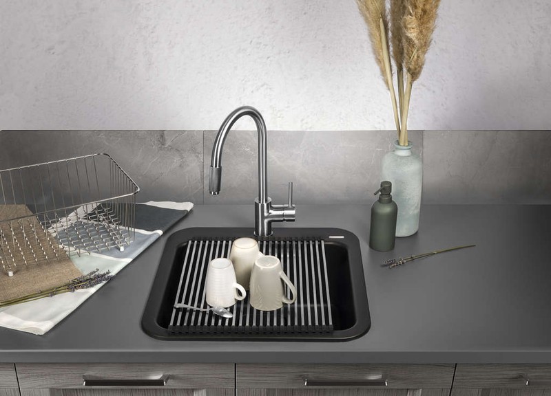 Накладная мойка — самая простая в установке и подключении. Она буквально «надевается» сверху кухонного шкафа вместо столешницы и может быть закреплена на готовой тумбе, без необходимости включать ее в проект на этапе дизайна. Ее можно легко самостоятельно подключить к коммуникациям, а также заменить в дальнейшем.