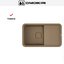 Материал — фирменный ArtGranit. Изделие выполнено методом литья, что обеспечивает цельную структуру без стыков. Толщина 10 мм при массе 14.4 кг дает ощущение монолита и уверенную устойчивость на тумбе. Густой карамельный оттенок напоминает природный цвета, удачно сочетается с деревянными фасадами и столешницами.