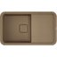 Выглядит лаконично и респектабельно: прямоугольный контур 86×51 см, мягкие закругленные углы радиусом скругления 4 см и однородная поверхность теплого карамельного цвета. Чаша и крыло образуют единое целое, организуя цельную рабочую площадку над столешницей.