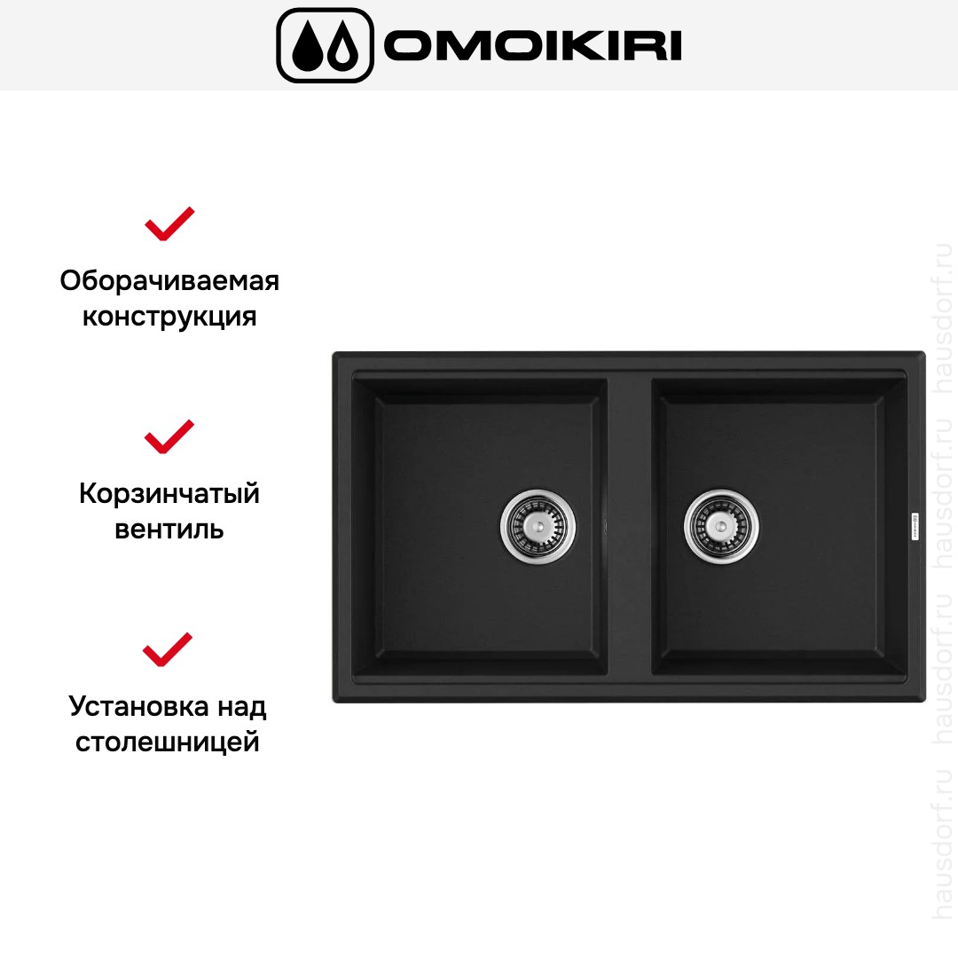 За счёт прямоугольной формы и двух чаш изделие идеально для больших семей и тех, кто часто готовит дома. Черный цвет сочетается с различными отделками столешниц и фасадов, а универсальная посадка подходит к распространённым кухонным шкафам. Небольшие рекомендации по уходу — мягкие моющие средства и неабразивные губки — помогут сохранить первозданный вид на долгие годы.