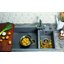 Рабочее пространство разделено на основную и дополнительную емкости. Главная чаша 52.5×42.5 см с вертикальной глубиной 22 см удобно принимает крупные кастрюли и противни. Дополнительная чаша 25×34.5 см и глубиной 19 см пригодится для мытья овощей, оттаивания или быстрого ополаскивания. Дополнительное отверстие в верхней части чаши предотвращает перелив, оставляя пространство вокруг сухим.