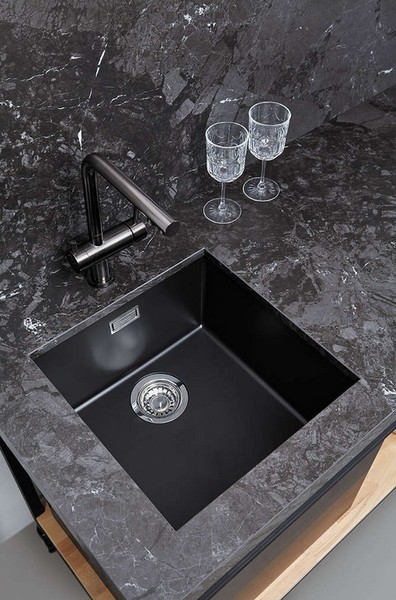 Графитовый цвет и строгие линии делают её универсальным решением для минималистичных и индустриальных кухонь, а компактные габариты дают преимущество в малогабаритных помещениях, дачных кухнях и зонах барной стойки. Небольшая глубина чаши снижает брызги при интенсивной мойке, а плотный материал обеспечивает долгий срок службы при правильном уходе. Эта мойка сочетает эргономику, аккуратный внешний вид и практичность для повседневного использования.