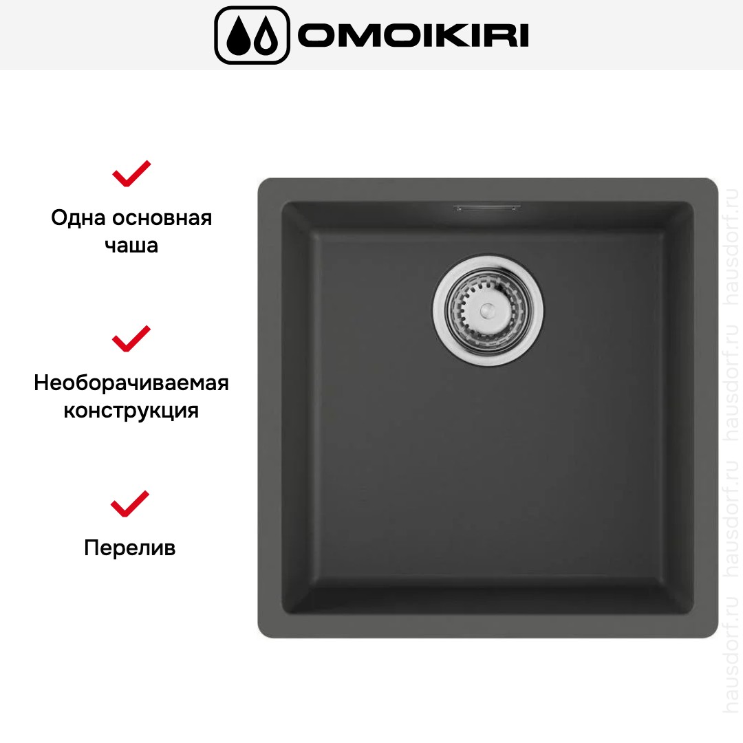 - Компактные наружные габариты 45,6×45,6 см позволяют установить мойку в кухонную базу от 50 см.