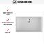 Прямоугольная врезная мойка белого цвета с аккуратно скругленными углами выглядит сдержанно и элегантно. При установке вровень со столешницей создаётся ровная плоскость без выступов. Габариты 75,1×45,1 см хорошо соотносятся с большинством стандартных рабочих зон. Одна большая чаша со строгими линиями рассчитана на ежедневные задачи; в целях безопасности предусмотрен перелив.