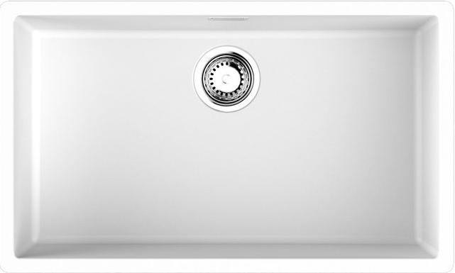 Выглядит белого цвета и представляет собой строгую прямоугольную врезную модель, рассчитанную на столешницу с вровеньной установкой. Чёткие линии основной чаши и ровная кромка создают аккуратную, но сдержанную композицию в рабочей зоне кухни. Конструкция необорачиваемая, поэтому ориентация и место монтажа определяются заранее при планировании гарнитура.