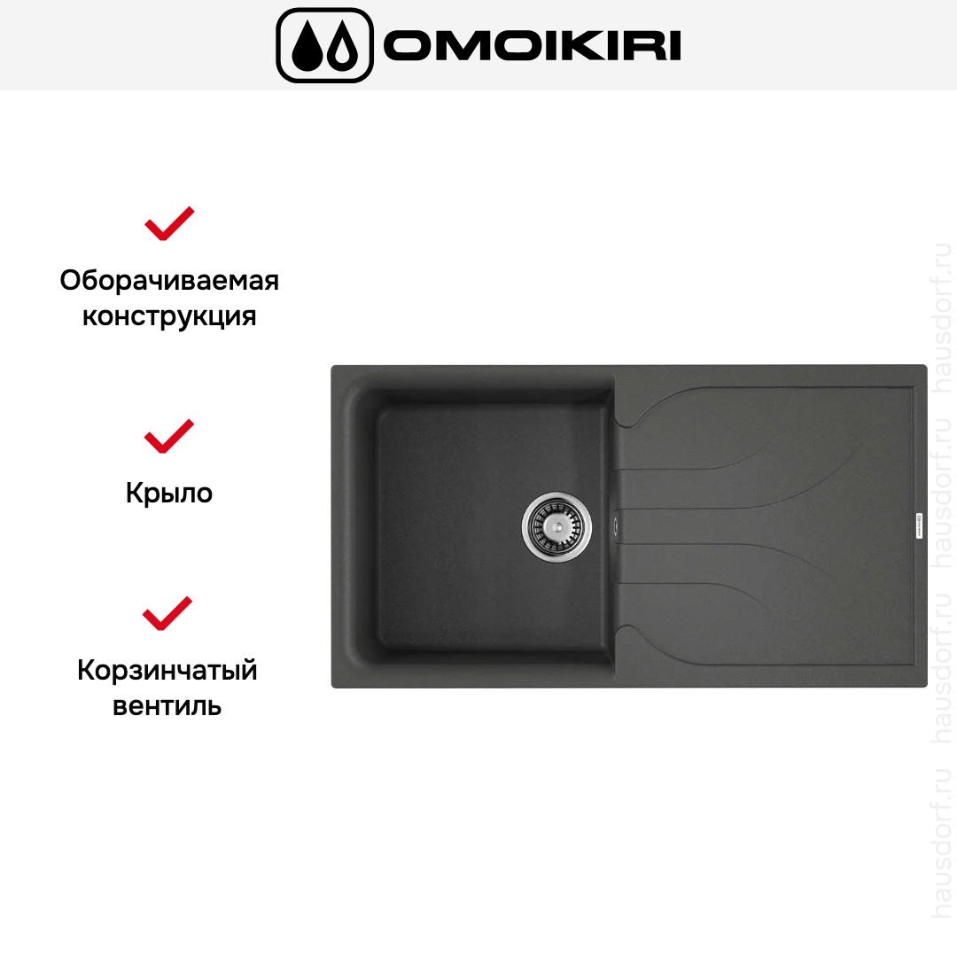 Накладная мойка Omoikiri — отличный выбор для тех, кто хочет создать гармоничное пространство с удобной сантехникой. простой в установке. Преимущество такой конструкции: легко подобрать практически к любой кухне и не придется демонтировать вместе с тумбой при ремонте или перестановке остальной мебели. Данная модель имеет стандартную форму, поэтому подходит большинству пользователей. Устанавливается над столешницей: это самый простой способ монтажа, зачастую с ним можно справиться даже без специалистов, главное — правильно рассчитать размеры ниши.