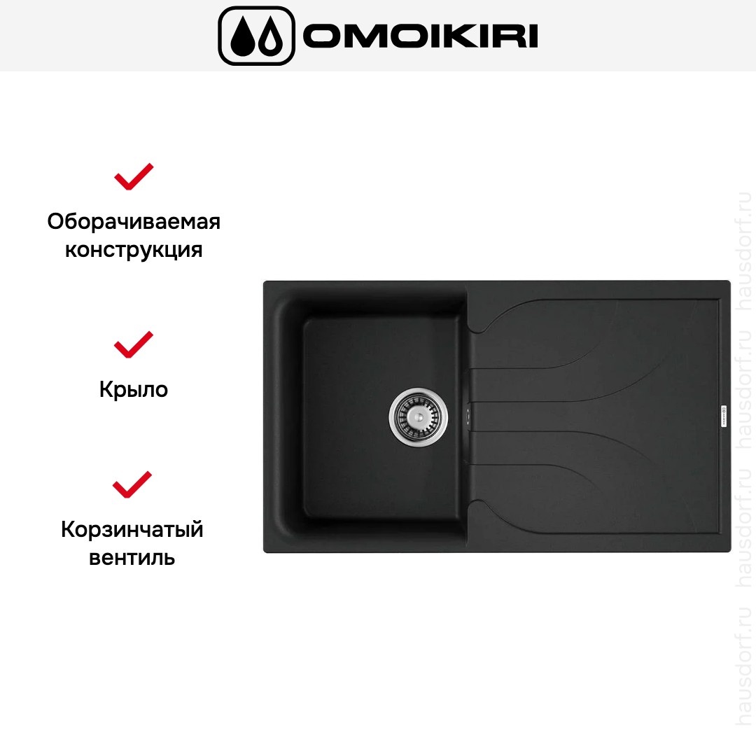 Обратите внимание на дизайнерские отличия мойки Омойкири, которые помогут в создании идеальной кухни в вашем доме. Она выполнена в цвете черный. Крыло, расположенное является дополнительным рабочим пространством, на котором можно сушить посуду, разделывать мясо и нарезать овощи.