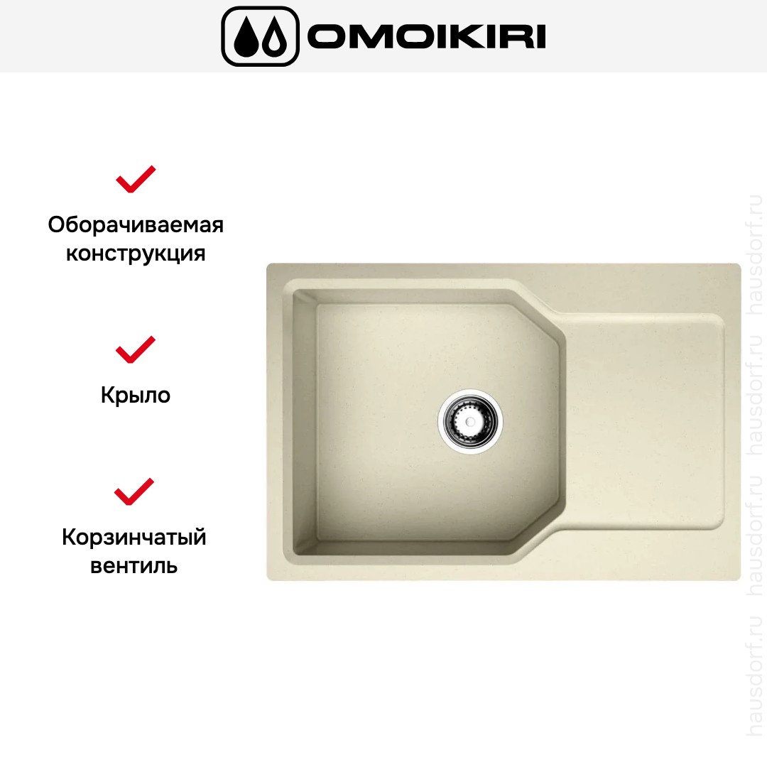 Мойка Omoikiri Yonaka 78-LB BE — накладная прямоугольная раковина, созданная для удобства повседневного использования. Чаша размером 4544 см и глубиной 19 см обеспечивает достаточно пространства для мытья крупных кастрюль и сковород. Наличие крыла дает рабочую зону для сушки или временного размещения посуды, и его можно расположить как слева, так и справа в зависимости от планировки кухни.