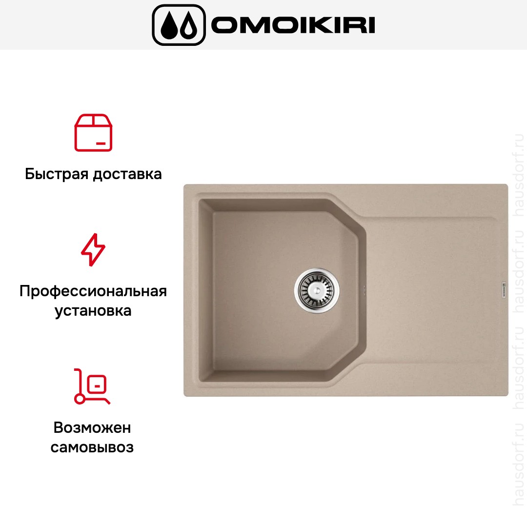 Мойка OMOIKIRI Yonaka 78-SA сочетает строгие геометрические формы и тёплый бежевый тон, что делает её универсальным решением для современных кухонь. Лаконичный прямоугольный силуэт выглядит стильно и одновременно ненавязчиво, он легко вписывается в интерьеры от скандинавского до классического. Матовое покрытие смягчает отражения и придаёт рабочей зоне аккуратный, дорогой вид.