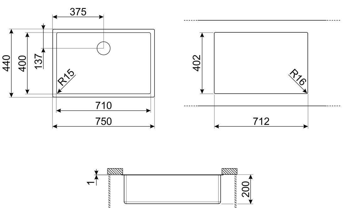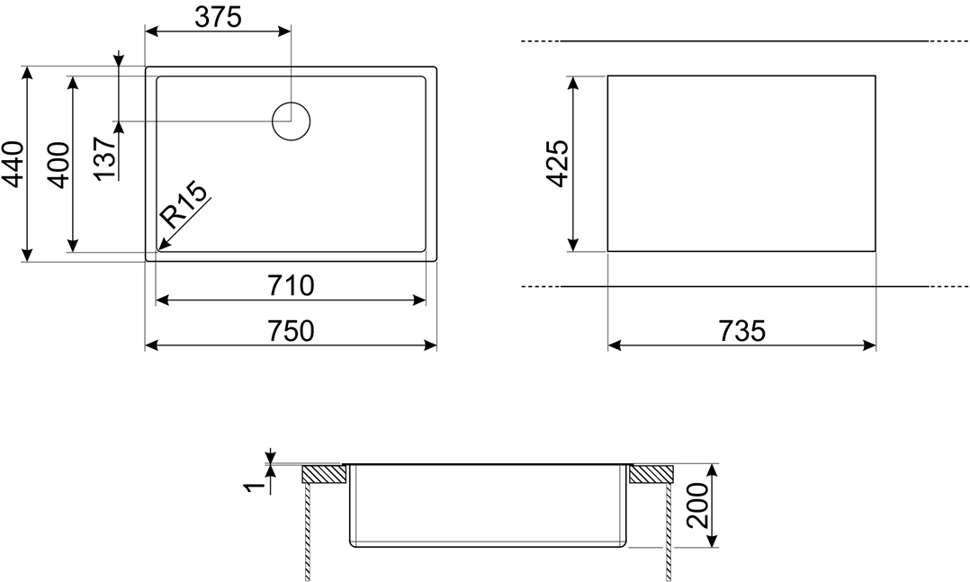 Врезная — устанавливается в подготовленное под нее отверстие в столешнице, крепится по краям среза.