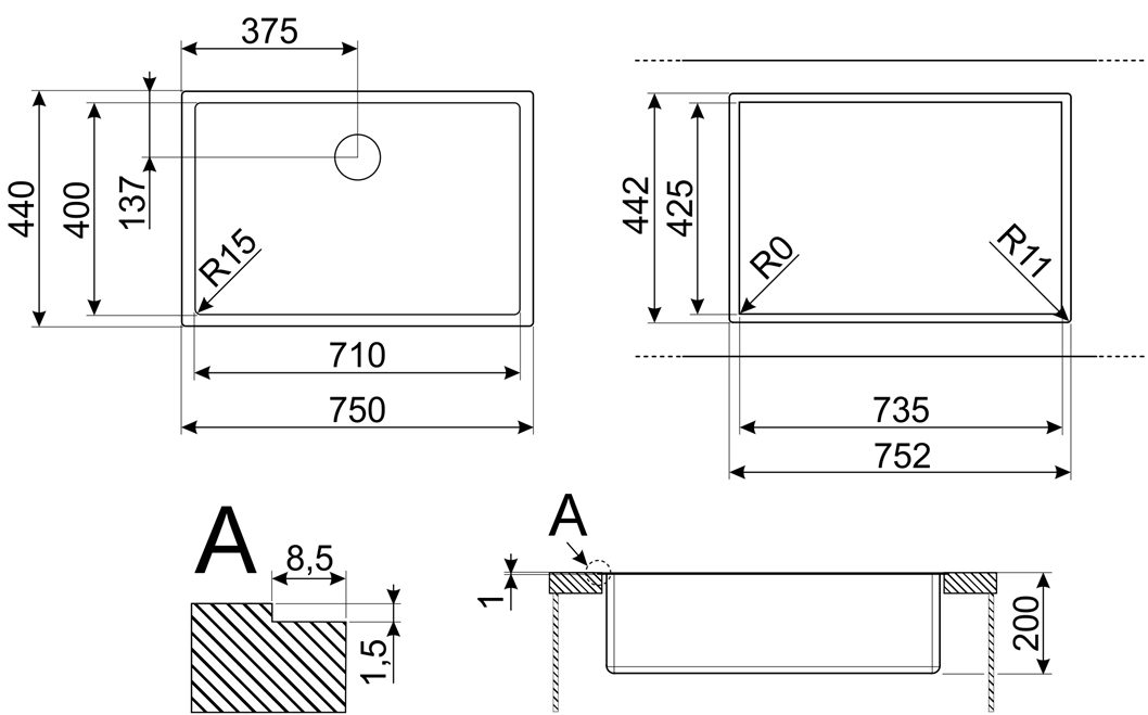 Мойка Smeg VFU71SFR — вместительная и элегантная врезная модель, разработанная для кухонь, где ценятся функциональность, комфорт и современный дизайн. Прямоугольная форма и габариты 75×44 см обеспечивают просторное внутреннее пространство, позволяющее с лёгкостью справляться с крупногабаритной посудой, кастрюлями и даже готовить продукты для большой семьи. Глубина чаши 44 см эффективно предотвращает разбрызгивание воды, сохраняя чистоту и порядок на рабочей поверхности.