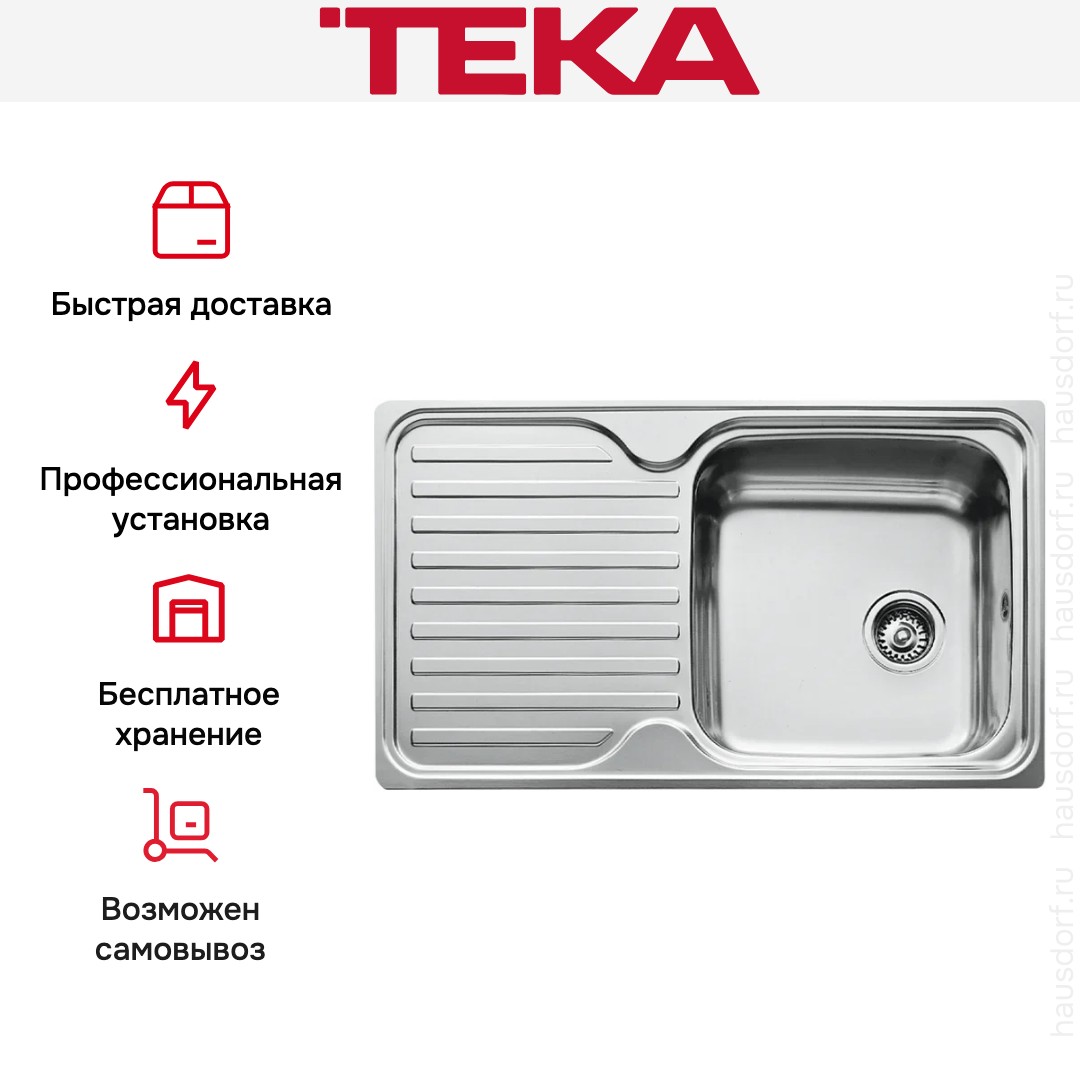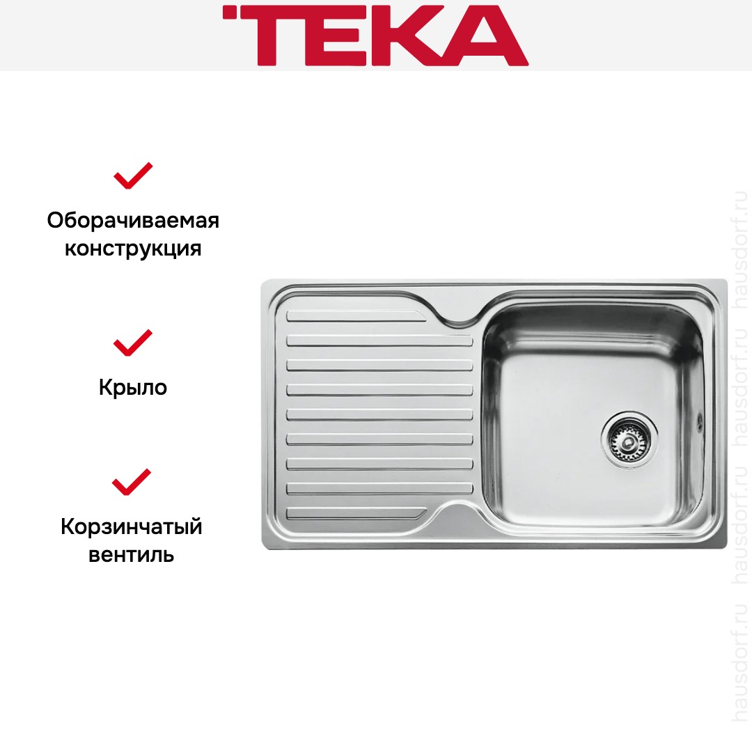 Накладная мойка Teka — отличный выбор для тех, кто хочет создать гармоничное пространство с удобной сантехникой. простой в установке. Преимущество такой конструкции: легко подобрать практически к любой кухне и не придется демонтировать вместе с тумбой при ремонте или перестановке остальной мебели. Данная модель имеет стандартную форму, поэтому подходит большинству пользователей. Устанавливается над столешницей: это самый простой способ монтажа, зачастую с ним можно справиться даже без специалистов, главное — правильно рассчитать размеры ниши.