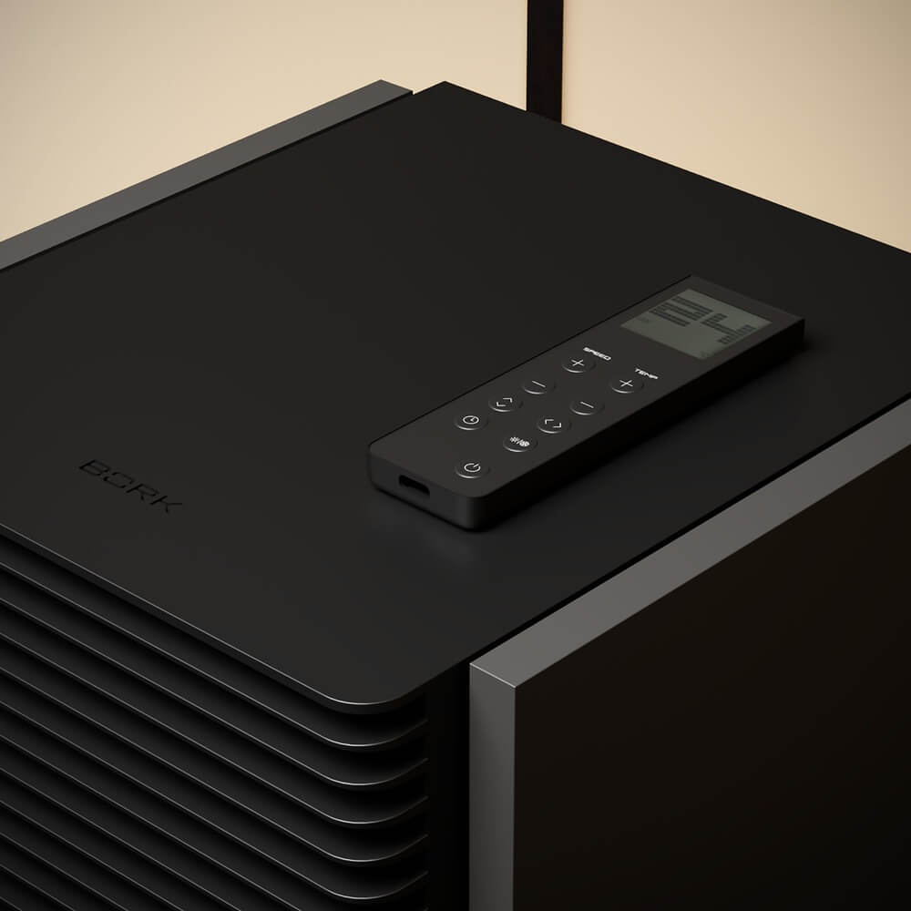 Обогреватель-вентилятор Bork O808 — компактный прибор в строгом черном корпусе из качественного пластика, который будет выглядеть ненавязчиво на рабочем столе или полке. Габариты 31×23×25 см и вес 5.3 кг делают устройство удобным для перемещения по комнате и для установки на горизонтальную поверхность. Магнитное крепление пульта к верхней части корпуса и отсек для сетевого шнура добавляют аккуратности в использовании и облегчают хранение аксессуаров.
