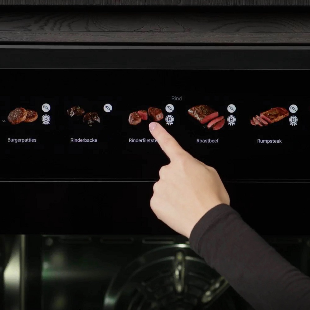 В большинстве моделей используются текстовые сенсорные дисплеи из нескольких сегментов. С помощью кнопок сенсорного меню на этих дисплеях можно запрограммировать работу прибора, выбрать программу или рецепт приготовления, указать способы нагрева, задать дополнительные опции. В ходе приготовления дисплей позволяет получить информацию о фактической температуре и влажности пара, оставшемся времени, этапе выполнения программы при комбинированном режиме или поэтапном приготовлении, об отсрочке старта, текущем времени и дате.