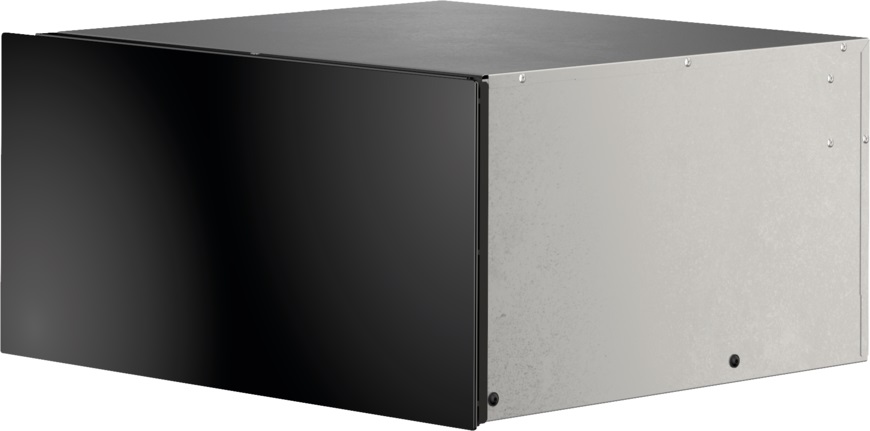 Подогреватель открывается нажатием на фронтальную панель — ящик выезжает на несколько сантиметров, полностью открыть камеру можно, потянув его до упора. Такой способ распространен в современной технике, благодаря этому вы можете собрать комплект из кухонных приборов без выпирающих ручек и создать «бесшовный» интерьер.