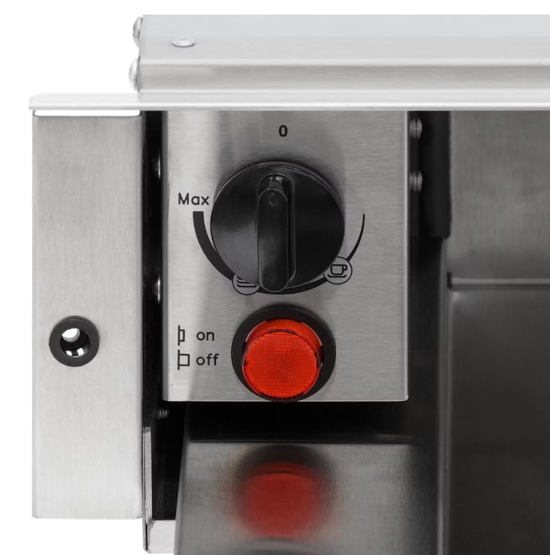 Переключатели во встраиваемых подогревателях для посуды позволяют включить прибор, выбрать режим работы (подогрев, размораживание, разогрев, подъем теста), отрегулировать температуру, задать длительность работы, выбрать время отсрочки старта, подключить прибор к беспроводной сети. Все модели делятся на две группы — с механическим и электронным управлением. Приборы с механическим управлением оснащаются кнопками включения/выключения и поворотным переключателем для задания режима работы. При ступенчатой регулировке указывается, для какого режима подходит данная температура (например, 30ºC — размораживание, 40ºC — подогрев чашек и стаканов). Электронная панель управления содержит сенсорные кнопки (например, кнопку выбора функции) и дисплей или систему индикаторов для задания всех параметров работы.