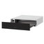 Подогреватель открывается нажатием на фронтальную панель — ящик выезжает на несколько сантиметров, полностью открыть камеру можно, потянув его до упора. Такой способ распространен в современной технике, благодаря этому вы можете собрать комплект из кухонных приборов без выпирающих ручек и создать «бесшовный» интерьер.