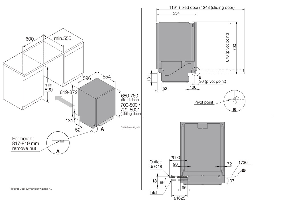 Встраиваемая посудомоечная машина Asko DSD747U — это образец скандинавского инженерного подхода, сочетающий в себе лаконичный дизайн, высокую функциональность и заботу об окружающей среде. Полностью встраиваемая полноразмерная модель идеально вписывается в кухонный гарнитур, оставаясь незаметной за фасадом. Её габариты — 81,9–87,2 × 59,6 × 55,4 см — позволяют разместить технику в стандартной нише размером 82 × 60 × 56 см, что обеспечивает гибкость при проектировании интерьера.