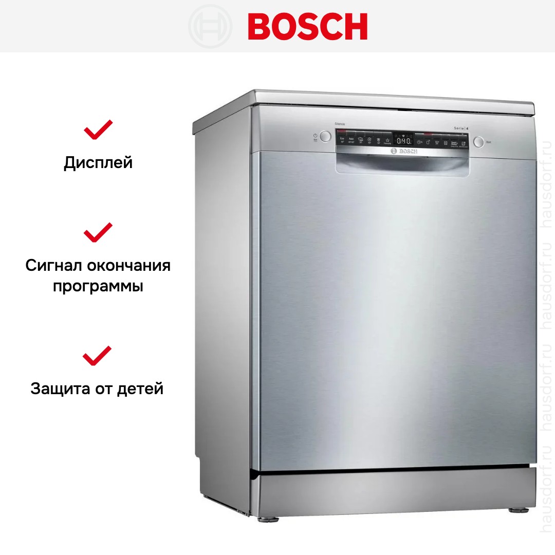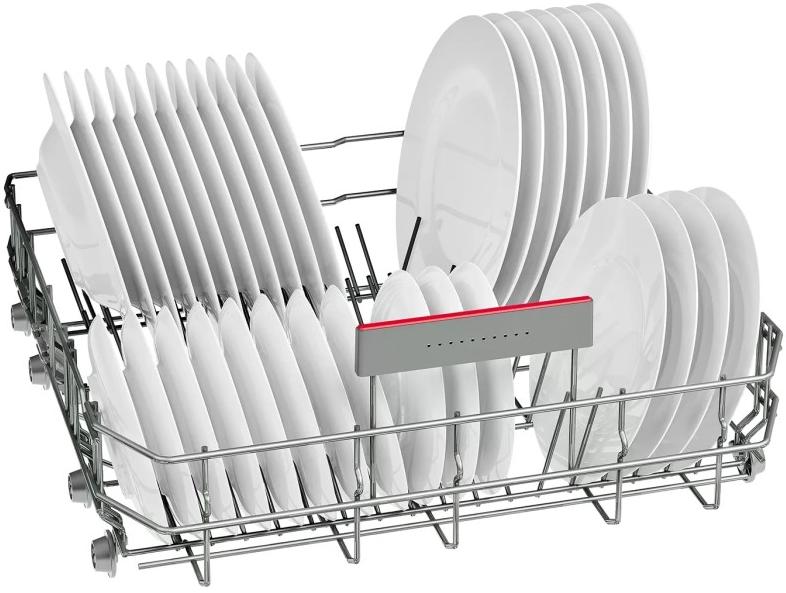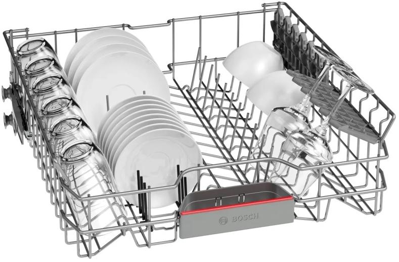 Отдельностоящая модель Бош отлично впишется в кухонный интерьер, главное — правильно выбрать место, чтобы подвести коммуникации. Имеет стандартные размеры, поэтому может не поместиться на очень маленькой кухне. В камеру можно загрузить ограниченное число комплектов: 13 шт. Комплектом считается набор посуды на одного человека, который нужен для полноценного приема пищи: глубокая и плоская тарелки, тарелка для салата, блюдце под чашку, сама чашка, ложка и вилка.