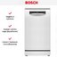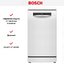 Отдельностоящая модель Бош отлично впишется в кухонный интерьер, главное — правильно выбрать место, чтобы подвести коммуникации. Имеет уменьшенную ширину — благодаря этому поместится даже на очень маленькой кухне. В камеру можно загрузить ограниченное число комплектов: 10 шт. Комплектом считается набор посуды на одного человека, который нужен для полноценного приема пищи: глубокая и плоская тарелки, тарелка для салата, блюдце под чашку, сама чашка, ложка и вилка.