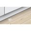 Полноразмерная полностью встраиваемая машина с габаритами 81.5×59.8×55 см становится в нишу 87.5×60×55 см и выглядит как часть кухонного гарнитура: дверь закрывается фасадом. Панель управления белого цвета скрыта сверху, в закрытом виде техника поддерживает единый стиль кухни.