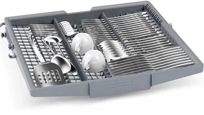 Верхняя корзина может регулироваться по высоте, так что при необходимости в нее можно поместить тарелки большего размера. Нижняя корзина позволяет установить вертикально большие суповые тарелки и блюда большого диаметра — для этого верхнюю корзину можно поднять выше. Тарелки обычно устанавливаются в откидные рамки-держатели, которые легко складываются на дно корзины. Всю посуду в нижней корзине рекомендуется устанавливать без соприкосновения предметов друг с другом, углублением к центру для более интенсивного воздействия струй воды на внутреннюю часть посуды.