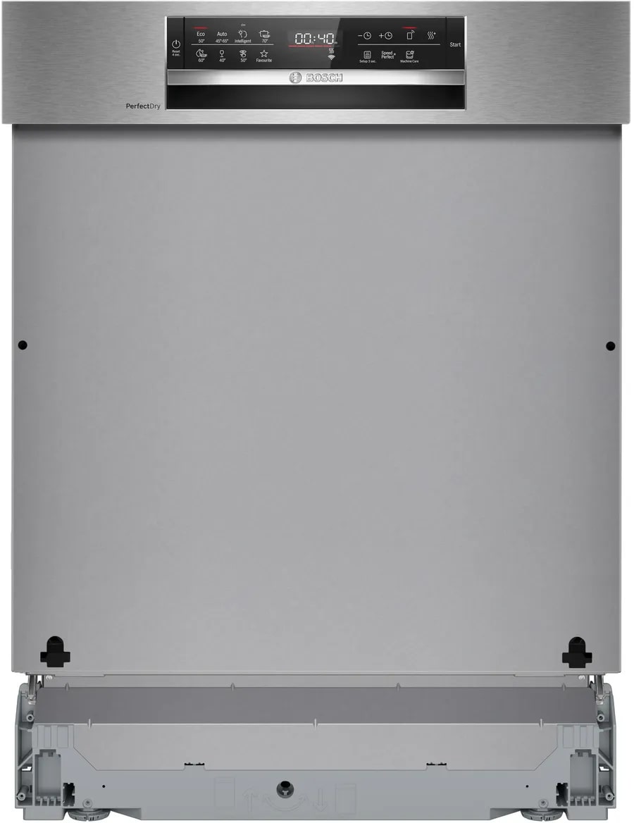 Встраиваемая посудомоечная машина Bosch SMI6ZCS16E — это современное решение для кухни, сочетающее в себе элегантный дизайн, высокую функциональность и энергоэффективность. Агрегат предназначен для полной интеграции в мебель, что обеспечивает его гармоничное сочетание с интерьером. Благодаря полноразмерному формату техника вмещает до четырнадцати комплектов посуды, что делает её идеальным решением для семей с разным количеством членов. Габариты корпуса составляют 81,5–87,5 см в высоту, 59,8 см в ширину и 57,3 см в глубину, а для монтажа требуется ниша размером 81,5–87,5 × 60 × 55 см, что упрощает установку даже в ограниченном пространстве.