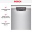 Посудомоечная машина Bosch SMU 4 EAI14S — это встраиваемое решение с открытой панелью, созданное для гармонии с кухонным гарнитуром и экономии пространства. Внешне прибор выглядит сдержанно: скрытая под фасадом дверца и нержавеющая панель управления создают аккуратный и современный облик. Корпус рассчитан под стандартную нишу 60×55 см, а высота регулируется от 81.5 до 87.5 см, что упрощает монтаж под навесной фасад. На передней панели видны только цифровой дисплей и эргономичные кнопки, что облегчает эксплуатацию и сохраняет минималистичный стиль кухни.