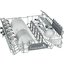 Корзина для столовых приборов достаточно высока, ввиду чего она устанавливается в нижнем коробе, где для нее предусматривается специальное место между разделителями для тарелок. Приборы в корзине могут размещаться как вниз, так и вверх рукоятками — это зависит от количества приборов и требований пользователя. Однако острые предметы — ножи или вилки — необходимо размещать острием вниз для предотвращения травм. Ножи рекомендуется размещать в корзинах с осторожностью, поскольку лезвия из керамики, например, могут затупиться. Чтобы избежать этого, следует использовать фирменные моющие средства и обязательно располагать ножи по отдельности, чтобы они не соприкасались с другими предметами.