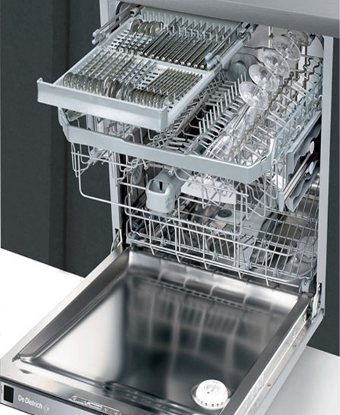- Посудомоечная машина De Dietrich DVH 1054 J снабжена интеллектуальной системой «ISC», которая в зависимости от загрузки и степени загрязнения посуды подберет оптимальную температуру работы.
