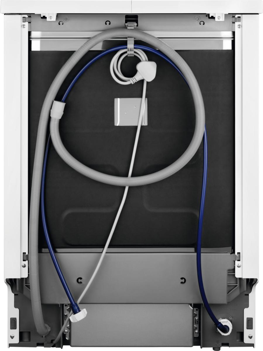 Отдельностоящая модель Электролюкс отлично впишется в кухонный интерьер, главное — правильно выбрать место, чтобы подвести коммуникации. Имеет стандартные размеры, поэтому может не поместиться на очень маленькой кухне. В камеру можно загрузить ограниченное число комплектов: 13 шт. Комплектом считается набор посуды на одного человека, который нужен для полноценного приема пищи: глубокая и плоская тарелки, тарелка для салата, блюдце под чашку, сама чашка, ложка и вилка.