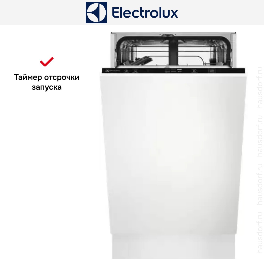 Посудомоечная машина Electrolux EEA22100L — компактный встроенный прибор, который легко прячется за фасадом кухни и сохраняет цельный интерьер. Она полностью интегрируемая, поэтому панель управления спрятана за дверцей, а внешний вид зависит от выбранного навеса. Узкая конструкция с шириной 44.6 см и глубиной 55 см экономит место, но при этом вмещает до 9 комплектов посуды. Высота 81.8 см делает её совместимой с большинством стандартных навесов, а габариты 81.8×44.6×55 см упрощают подбор ниши для установки.