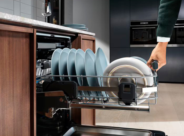 Полноразмерные модели выбирают в больших семьях, а также те, кто много готовит или часто принимает гостей. Их вместимость может составить до 15 комплектов посуды, а габаритные размеры соответствуют размерам стандартной кухонной мебели шириной и глубиной 60 см и высотой 82-85 см. Они выпускаются как во встраиваемом, так и в отдельностоящем варианте: во втором случае для установки понадобится достаточно много места. Как правило, полноразмерные приборы отличаются большим набором стандартных и специальных программ мойки, а также дополнительных опций: в частности, они оснащаются третьей корзиной для мытья столовых приборов.