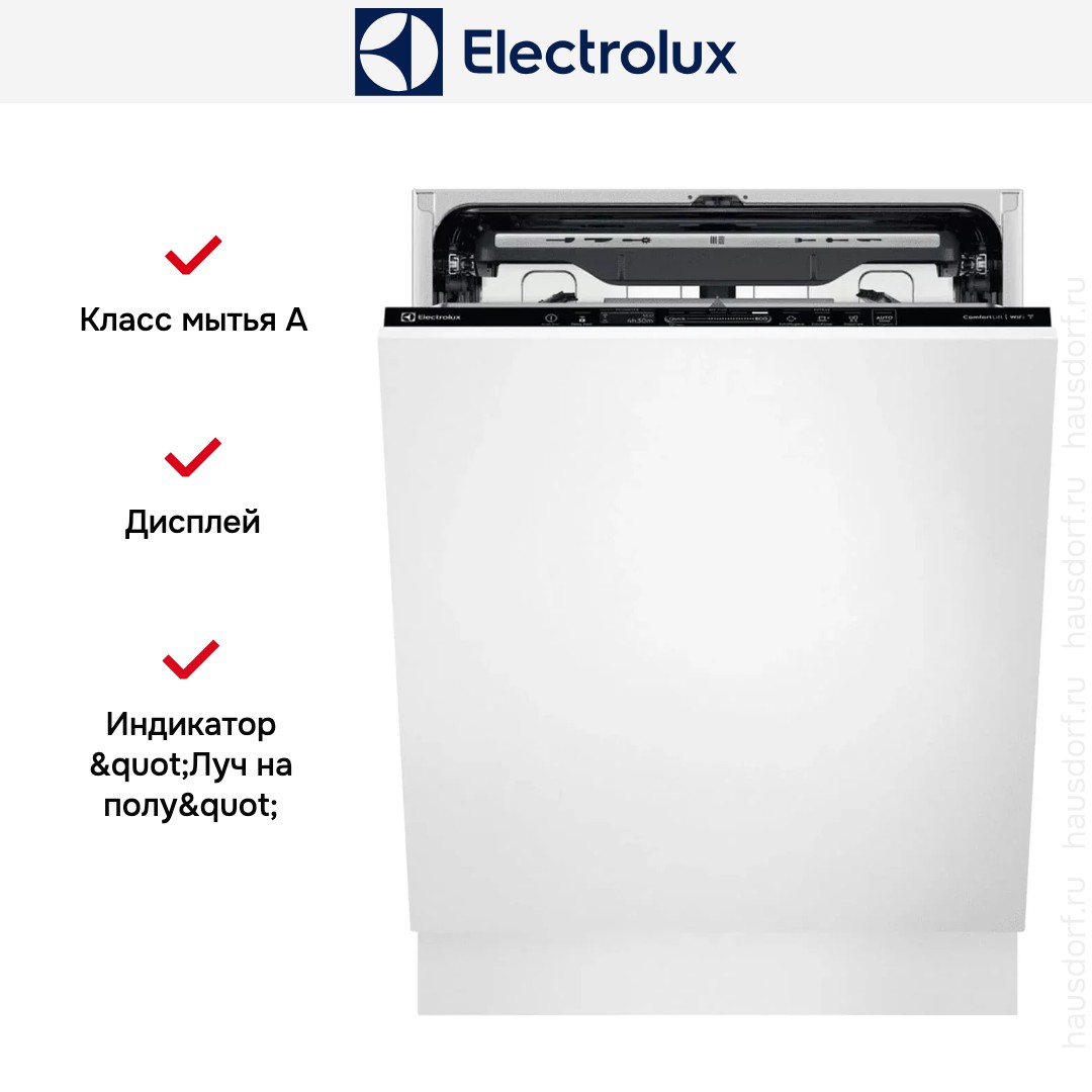 Встраиваемая посудомоечная машина Electrolux EEG88600W представляет собой полностью встраиваемый бытовой прибор с закрытой белой панелью управления, которая прячет кнопки и дисплей за фасадом мебели. Корпус рассчитан на интеграцию под ваш навесный фасад, поэтому внешний вид кухни остается единым и аккуратным. Внутренняя камера из нержавеющей стали смотрится премиально и устойчива к коррозии, а мягкая подсветка облегчает загрузку после темноты.
