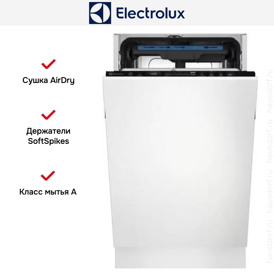 Сушка AirDry в посудомоечных машинах Electrolux позволяет досушить посуду посредством естественного притока воздуха. По завершению рабочего цикла дверца посудомоечной машины автоматически приоткрывается на 10 см, что позволяет избежать появления пятен, разводов и неприятного запаха.